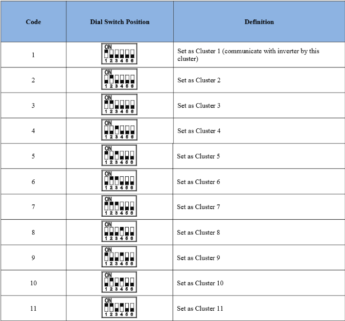 o Only Cluster 1 needs to be connected to the inverter via the communication