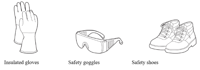 - Always wear protective eyewear, clothing, and insulated gloves when handling the