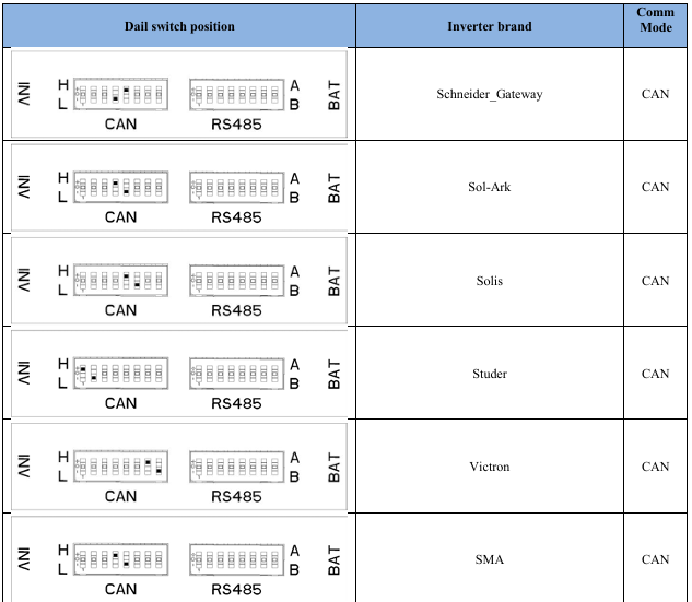 match the corresponding inverter’s code.