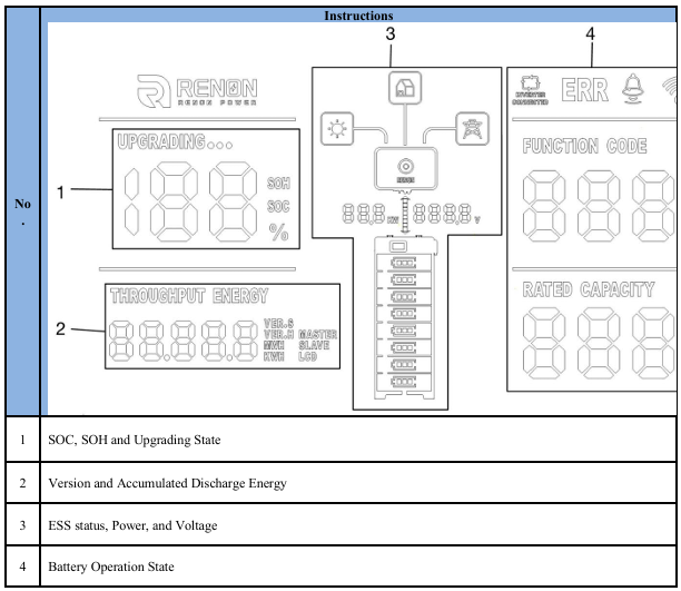 • The SOC will be displayed for 60 seconds, followed by the SOH for 3 seconds,