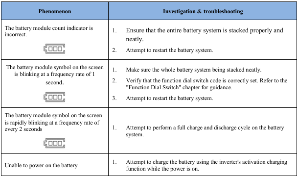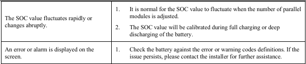 month, as this may cause permanent damage and void the warranty. - For long-term storage, recharge the battery module every 3 months, maintaining an SOC of at least 90%.