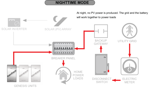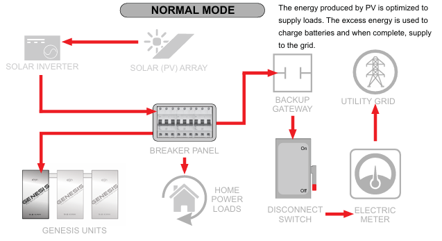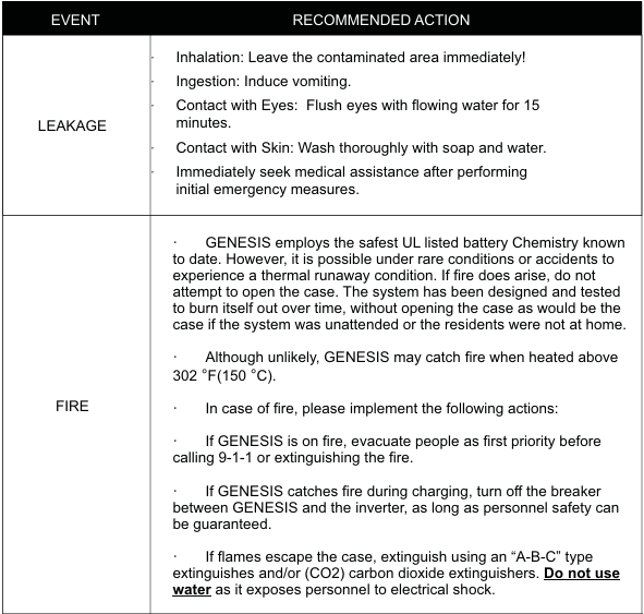 GENESIS IS A BATTERY that may operate when the electrical grid is experiencing an outage. Do not attempt to perform any work on the system until feed power has been removed and the battery is suffuciently discharged. (10% SOC or less).