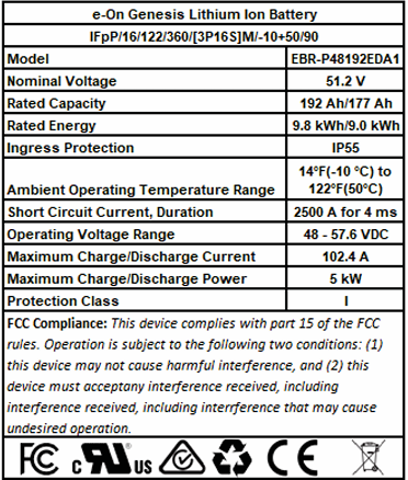 The e-On GENESIS Battery has cleared UN38.3 (Section 38.3 of the sixth Revised Edition of