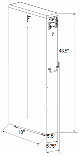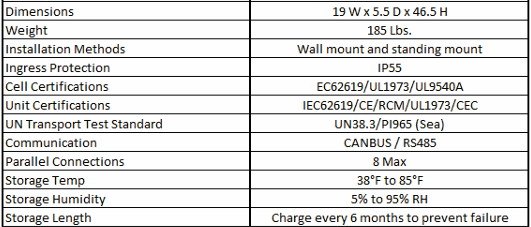 The battery is an energy storage unit composed of cells, mechanical parts, battery management system (BMS), and power and signal terminals. Product dimensions (unit: in) and appearance are as shown below: