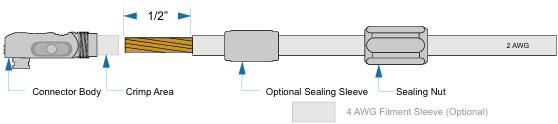 sleeve (if included) and sealing nut along the cable as shown. The included 4 AWG fitment
