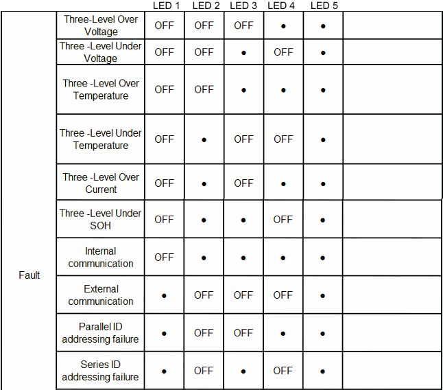 - Power-off triggers by fault: Battery powers off if level three under-voltage, cell over-voltage